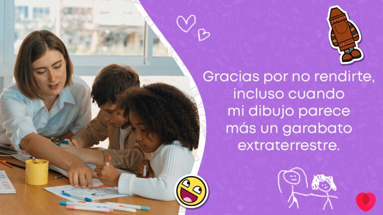 - «Gracias por no rendirte, incluso cuando mi dibujo parece más un garabato extraterrestre».