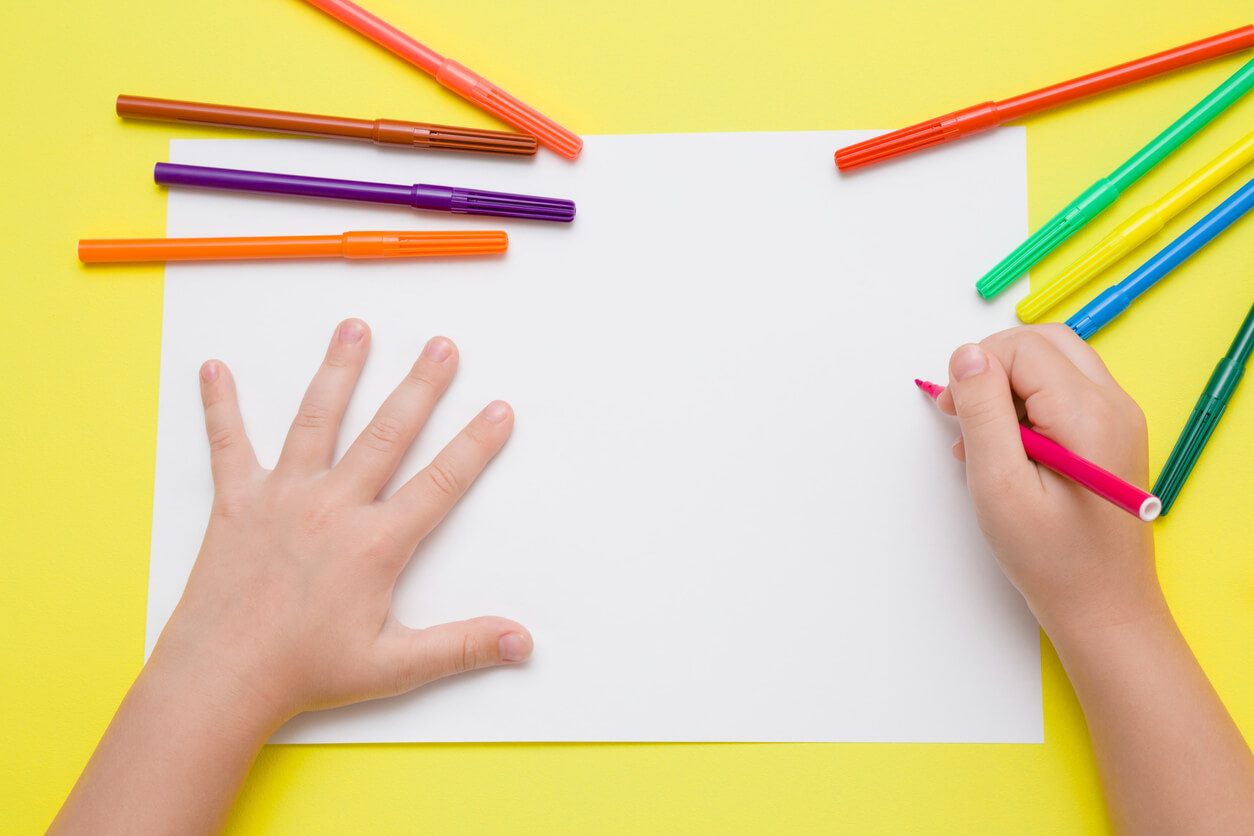 Dale a cada niño una hoja de papel y un lapicero o similar. Los pequeños tienen que colocar el papel delante de su rostro y sujetarlo con una mano, mientras que con la otra se dibujan la cara. Es importante que no les des lapiceros muy afilados para que no traspasen el papel y puedan lastimarse.