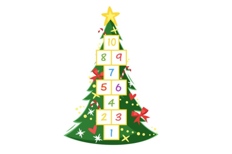 Imagina un árbol de Navidad dibujado en el suelo, adornado con los números típicos de este juego clásico y tradicional. Solo necesitarás crayones para pintar el suelo, donde deberás añadir los números del 1 al 8. Luego, invita a los pequeños a jugar de la siguiente manera: