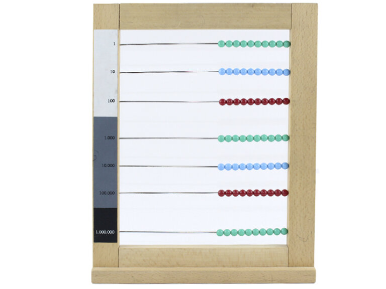 Este es otro de los elementos Montessori que sirve para introducir a los niños en operaciones más complejas como la suma, resta, multiplicación y división.