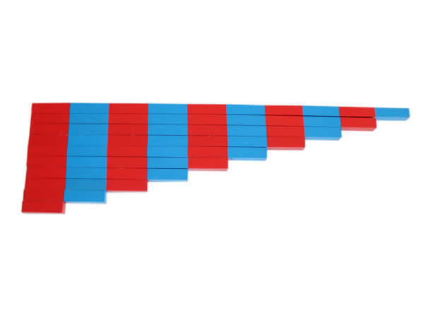 Estas piezas de madera con números a menudo varían en tamaño; por ejemplo, el número 1 corresponde a una barra de madera más pequeña que la barra que representa el número 9. De esta manera, el niño también comienza a comprender la noción de que el 9 es mayor que el 1 a través de una diferencia simple en el tamaño.