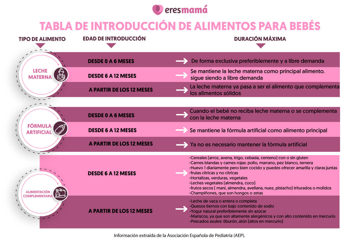 Tabla de introducción de alimentos para bebés