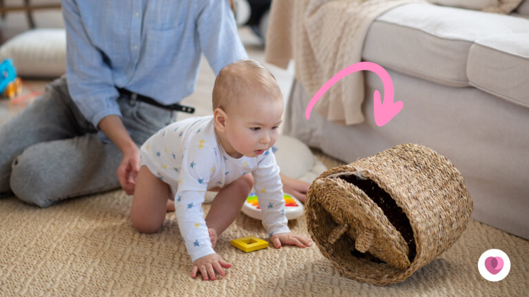 - El bebé comienza sentado en el suelo, con las piernas extendidas o dobladas.